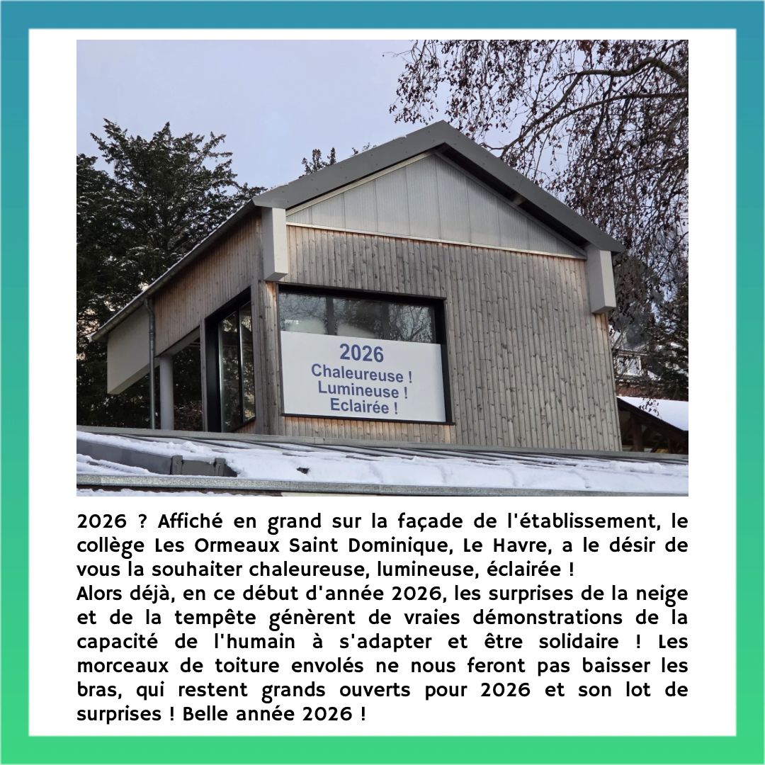 Le collège Les Ormeaux Saint Dominique rassemble, dans un cadre historique et verdoyant, exceptionnel au Havre, près de 700 jeunes de la 6ème à la 3ème, dont deux Unités Locales d’Inclusions Scolaire. Ce collège doit son nom au quartier où il se trouve, autrefois très végétalisé d’ormeaux, ces petits arbustes.