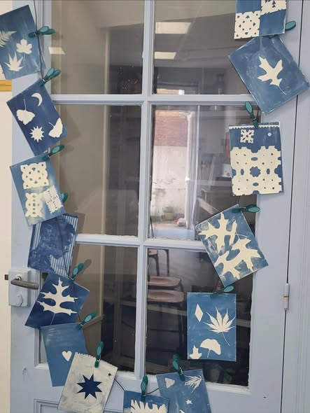 🧪 CLUB SCIENCES 👩🔬 Avec les 5e, nous avons fait de l’art avec la chimie: le cyanotype (ancêtre de la photographie) ▶️ Sur une feuille à dessin, nous avons déposé une couche d’un mélange de 2 produits qui ont fait une transformation chimique. Une fois sec, nous avons déposé un pochoir ou une feuille d’arbre sur le papier dessin puis nous l’avons exposé à la lumière du soleil quelques minutes... une couleur bleu apparaît (résultat de la transformation chimique). Nous rinçons le papier pour enlever le mélange de produits. Et nous séchons!
