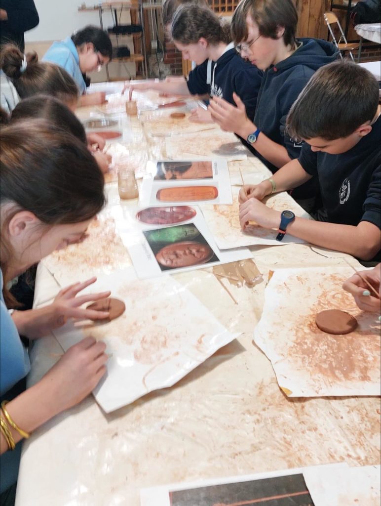 Novembre 2025: Une journée pour remonter le temps! A Gisacum, les élèves latinistes de 4e et 3e ont pu se mettre dans la peau d’un légionnaire romain, et visiter les vestiges du site archéologique. Les activités se sont terminées par la fabrication d’une « intaille » romaine, petite parure porte-bonheur.