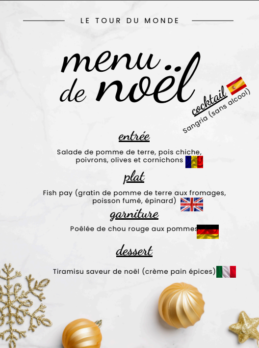 Le menu de Noël fut l’occasion pour les élèves de voyager à travers différentes contrées.